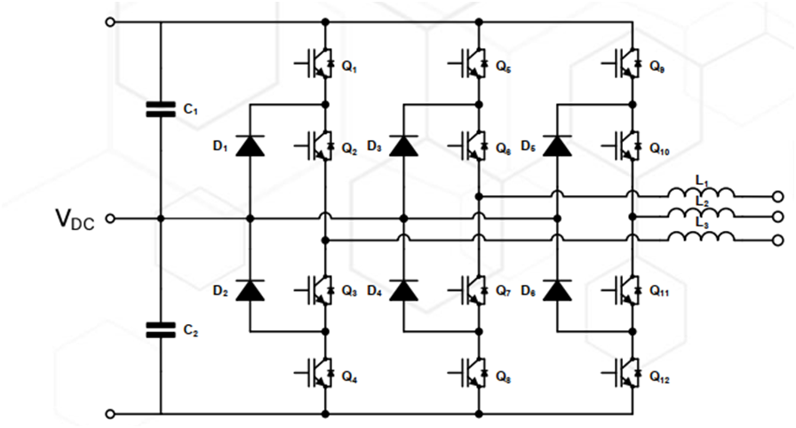 三電平I-NPC和三電平ANPC是電源轉(zhuǎn)換系統(tǒng)(PCS) 中常見的雙向拓撲結(jié)構(gòu), 可滿足輸出功率不斷增長的需求。 與兩電平拓撲相比, 三電平拓撲需要更多的元器件、 驅(qū)動信號以及更復(fù)雜的控制結(jié)構(gòu)。 但其優(yōu)勢也十分明顯:三電平結(jié)構(gòu)能夠有效降低功率損耗和電流紋波(由于所承受電壓減半) , 并具有更好的抗電磁干擾(EMI) 性能。