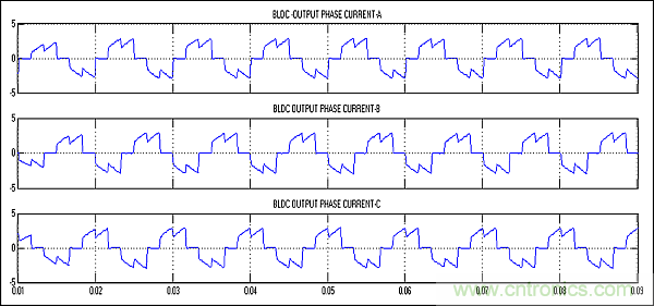 預估的BEMF波形如圖6所示, A相電流和A相BEMF如圖7所示。
