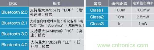 藍(lán)牙標(biāo)準(zhǔn)包括規(guī)定了通信速度和耗電量等的“版本”、表示選配功能的“模式”以及規(guī)定了通信距離的“Class”。產(chǎn)品標(biāo)準(zhǔn)中列舉了這些參數(shù)。