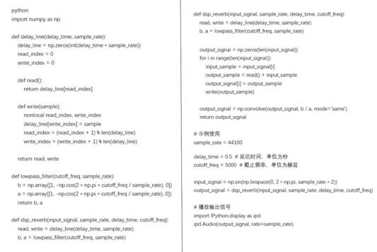 創(chuàng)建一個DSP混響的效果器。以下圖(13)是一個使用Python和NumPy庫實現(xiàn)的簡單DSP混響效果的示例代碼: