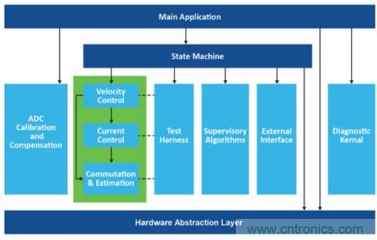 模塊化體系結(jié)構(gòu)的另一個好處是將外圍接口層(或硬件抽象層)與電機控制軟件分離,這使設(shè)計人員可以隨著應(yīng)用程序和性能要求的變化將IP無縫地從一個電機控制器遷移到另一個電機控制器。
