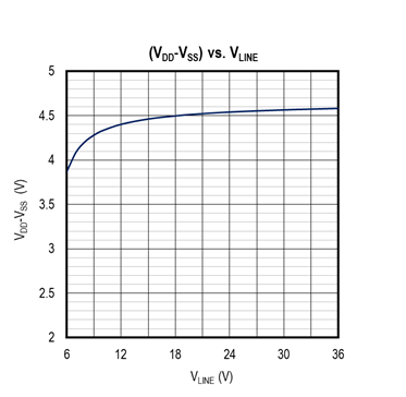 曲線圖3:MAX40016電源電壓(VDD-VSS)與VLINE的函數(shù)關(guān)系
