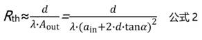 除了熱阻熱容,另一個(gè)影響半導(dǎo)體散熱的重要物理效應(yīng)為熱的橫向傳導(dǎo)。這個(gè)術(shù)語指熱能在熱導(dǎo)體內(nèi)立體交叉?zhèn)鬏?,即熱量不僅能垂直傳導(dǎo)也可以橫向傳導(dǎo)。根據(jù)公式1,可由表面積A和厚度d計(jì)算Rth。