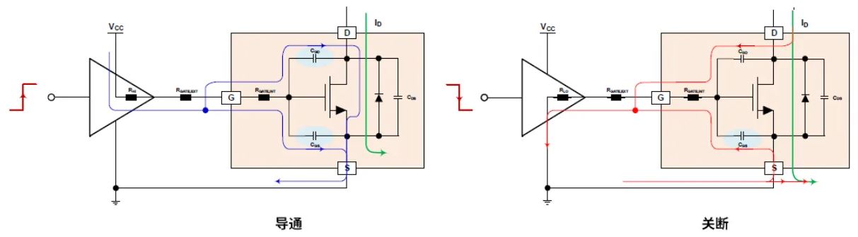 柵極驅(qū)動(dòng)器選得好,SiC MOSFET高效又安全圖1:柵極驅(qū)動(dòng)器在MOSFET開/關(guān)操作中的驅(qū)動(dòng)方式和電流路徑。MOSFET模型包括寄生電容,如CGD和CGS,它們必須充電和放電。