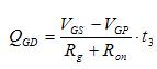 VGS電壓從0增加到開(kāi)啟閾值電壓VTH前,漏極沒(méi)有電流流過(guò),時(shí)間t1為: