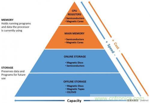 不同于存儲器的是,儲存裝置還可以進(jìn)一步分類為線上或離線。圖1顯示存儲器與儲存的主要特性。