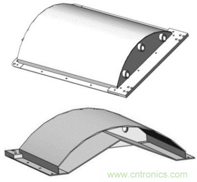 通?;瘜W液濃度越高,腐蝕性越強,側向腐蝕性也越強,形貌控制越困難。石英晶體濕法刻蝕通常溶液溫度在 40~90 ℃,溶液揮發(fā)很快,如果不能有效控制溶液揮發(fā),溶液濃度上升很快,腐蝕過程形貌無法有效控制。高精度濃度控制儀可以實現對 HF 離子濃度精準檢測及控制,但是實現復雜,成本較高。如圖 6 所示,采用冷凝密封槽蓋,槽蓋呈拱形結構,槽蓋內通入 10~15 ℃的冷卻水,有效冷凝腐蝕過程揮發(fā)的溶液,并通過冷凝蓋人字形結構有效導入工藝槽中。槽蓋選用不銹鋼材料,整體噴氟耐腐蝕保護,密封圈選用氟材料。