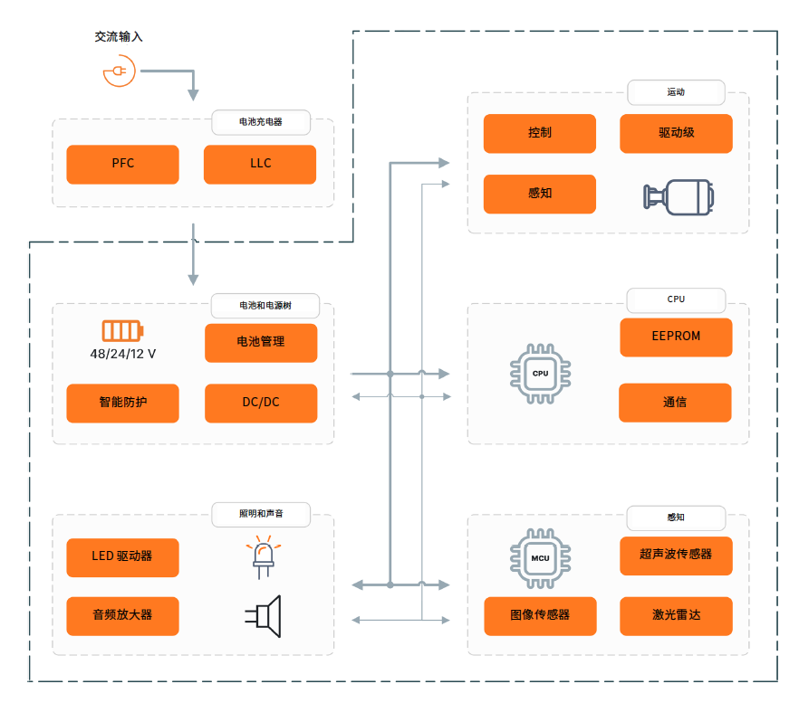 自主移動機(jī)器人(AMR)是一種復(fù)雜的系統(tǒng),與自動駕駛汽車有許多共同之處--它們需要感知、電機(jī)驅(qū)動、電源轉(zhuǎn)換、照明和電池管理。也許最大的挑戰(zhàn)是將這些子系統(tǒng)整合到一個最終產(chǎn)品中--由于需要集成來自不同供應(yīng)商的不同子系統(tǒng),這一挑戰(zhàn)變得更加困難。